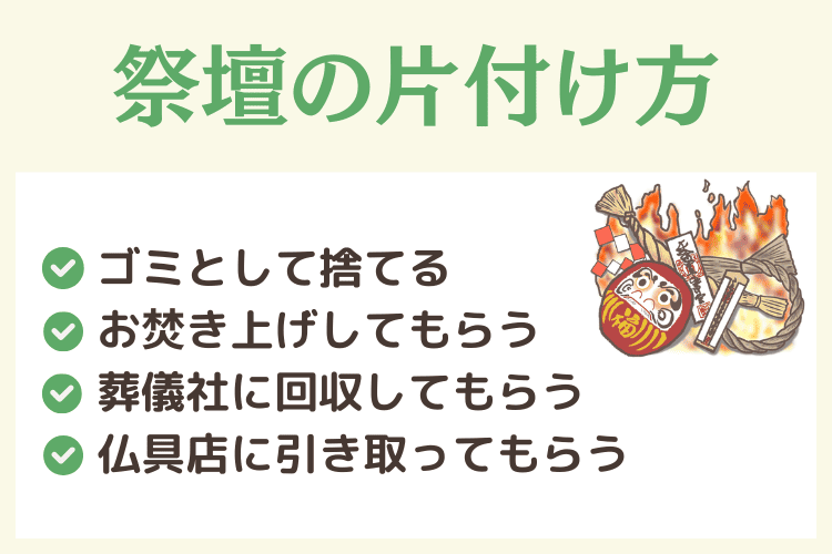 四十九日法要が終了したら後飾り祭壇は使用しないため、処分しても問題はありません。