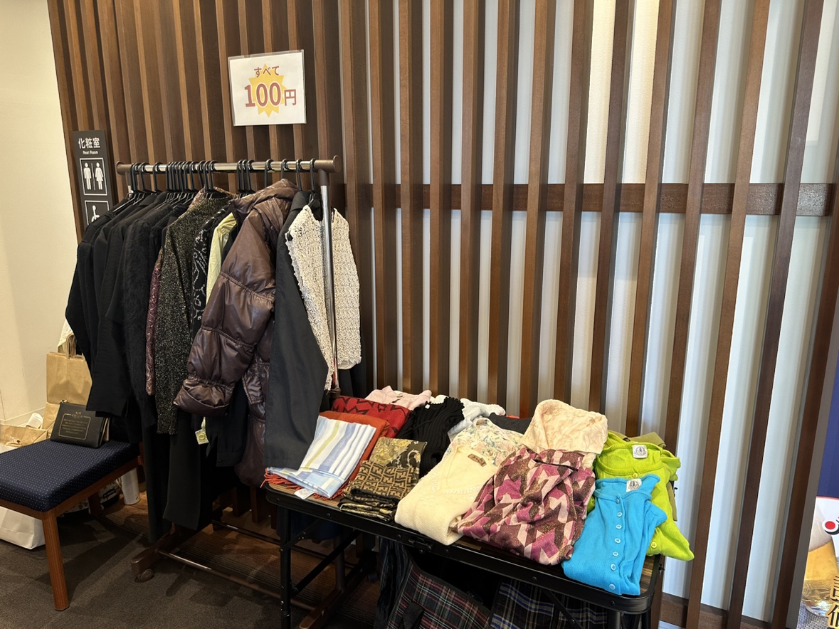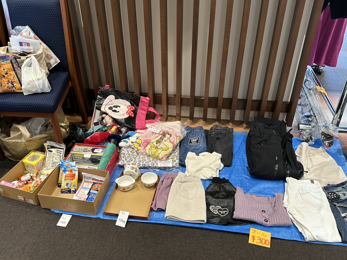 ここでは、普段フリマアプリなどで出品すれば数千円や中には数万円の価値がつくブランドの服ものなどがなんと100円に!さらにおまけもしてくれたりなど格安で売られていて大盛況でした!