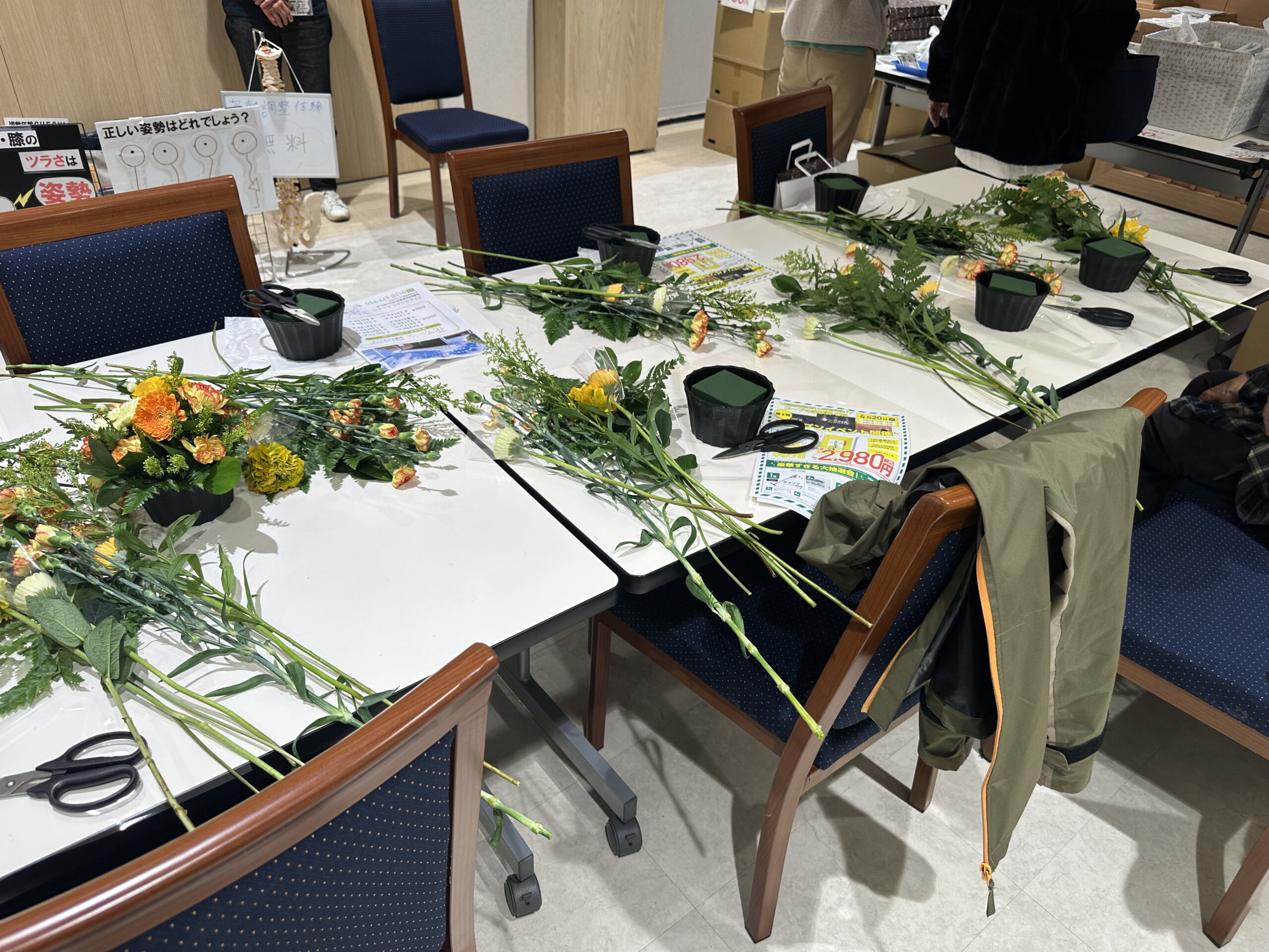 また、軸花スタッフさんが講師となってみんなで楽しむメインイベント「フラワーアレンジメント教室」も開催されました!
