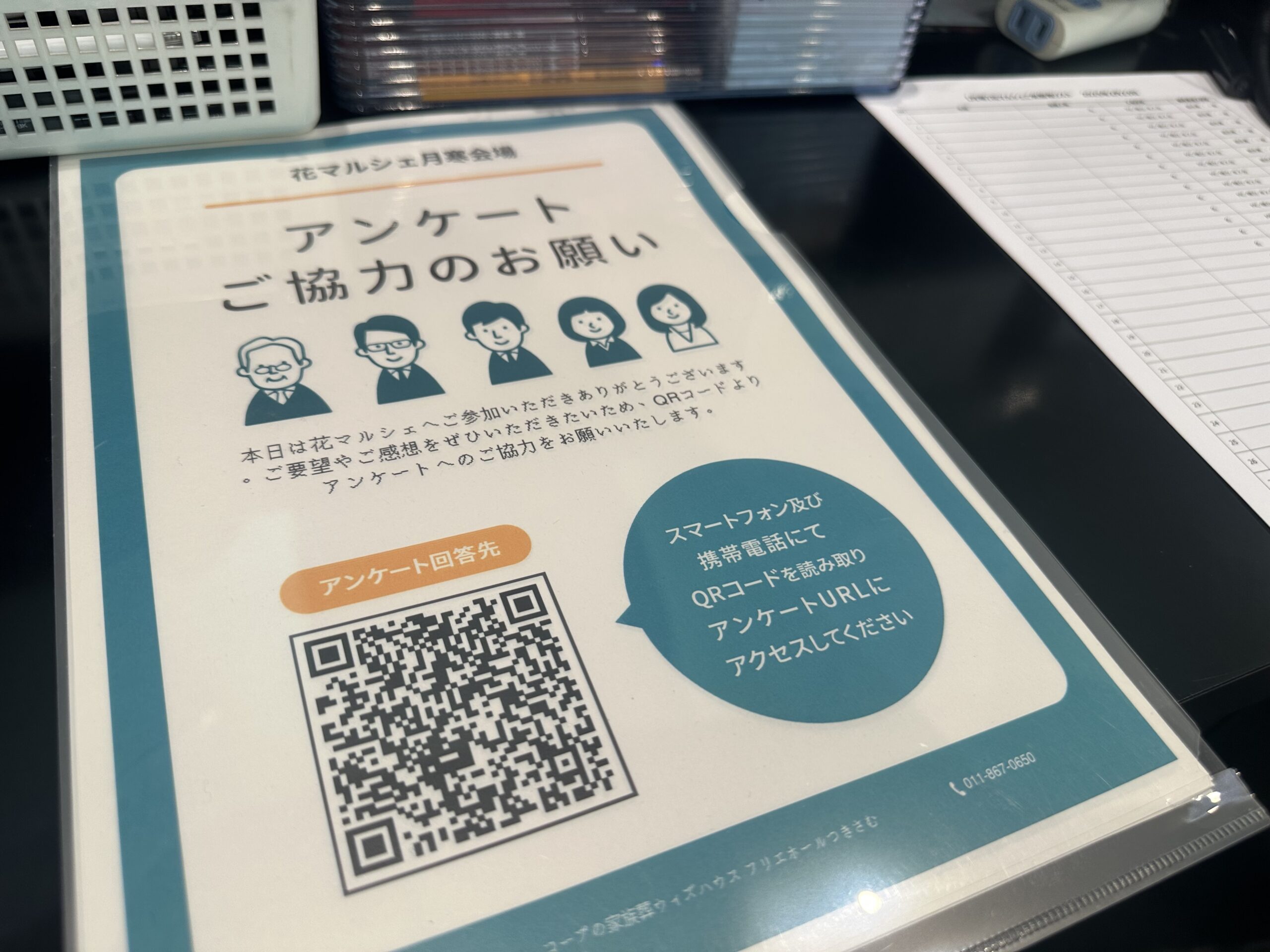受付では、紙にご記入いただくか、お手持ちのスマートフォンでコープの家族葬ウィズハウス公式LINEアカウントを開いていただき、