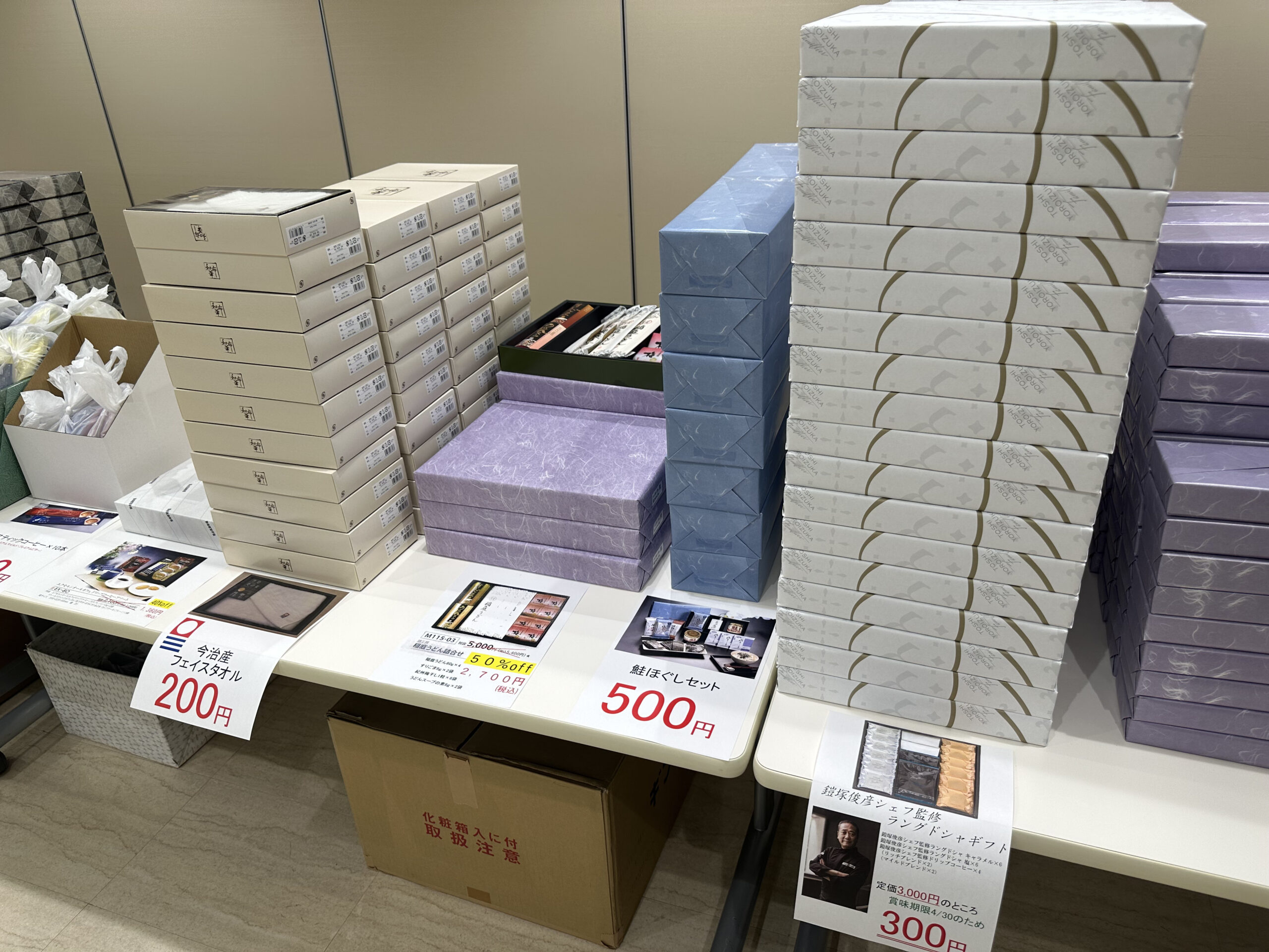 「え!?なんでこんなに安いの??」と初めてご来場くださった方でつぶやかれている方がいらっしゃたりするのですがこちらは “賞味期限が近いもの” “廃盤該当商品” のため格安で販売されているとのことです!