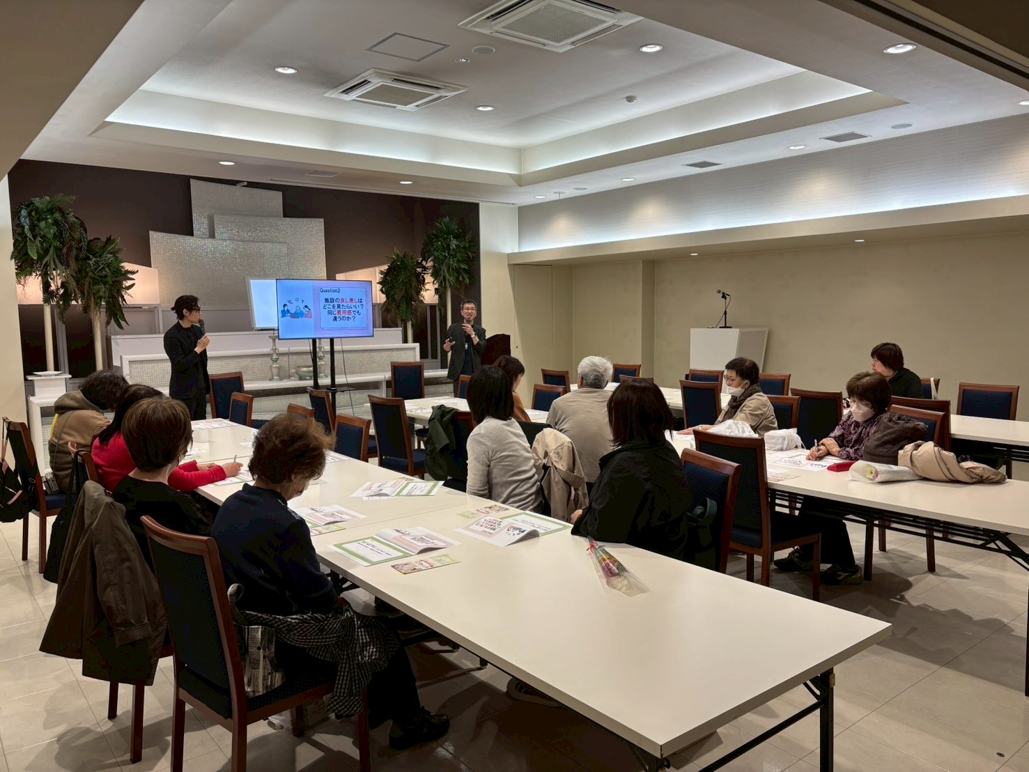 入ってすぐのブースでは、介護セミナーを行っております!