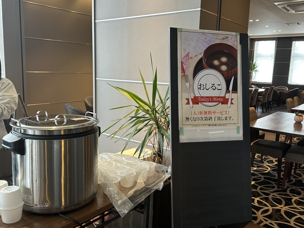 25年最初の軽食は「おしるこ」です!(※なくなり次第配布終了となりますのでご了承ください。)
