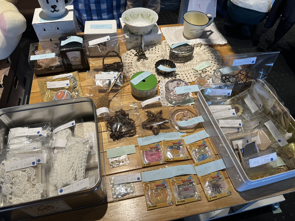こちらの券をお持ちいただき中に進んでいただきますと、フリーマーケットブースが並んでおります!