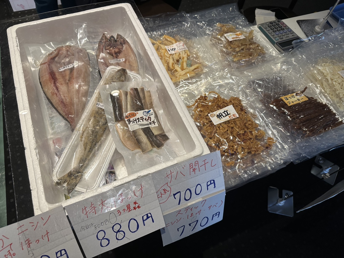 こちらは普段よりお安く魚の開きや珍味などを手に入れることができます!リピーターさんも多く、「鯖美味しいから今月も買いにきた!」や「魚の骨が苦手だけど骨がとられているからこれなら食べやすい!」など開始10分ほどで3分の1〜1.5ぐらいが完売になっていました!