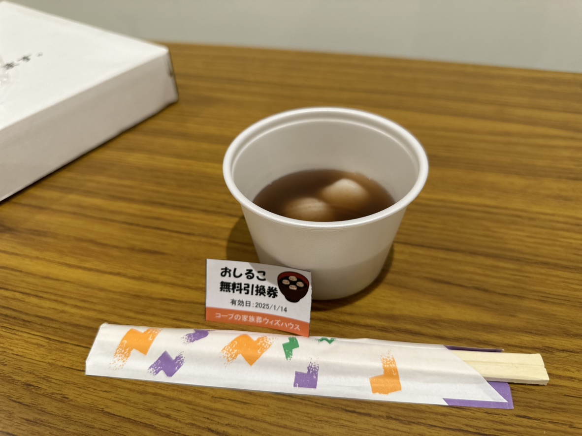 25年最初の軽食は「おしるこ」です!(※なくなり次第配布終了となりますのでご了承ください。)