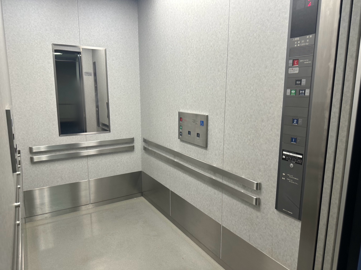 1階と2階を行き来する際には、螺旋状の階段だけでなくエレベーターも設置されております!